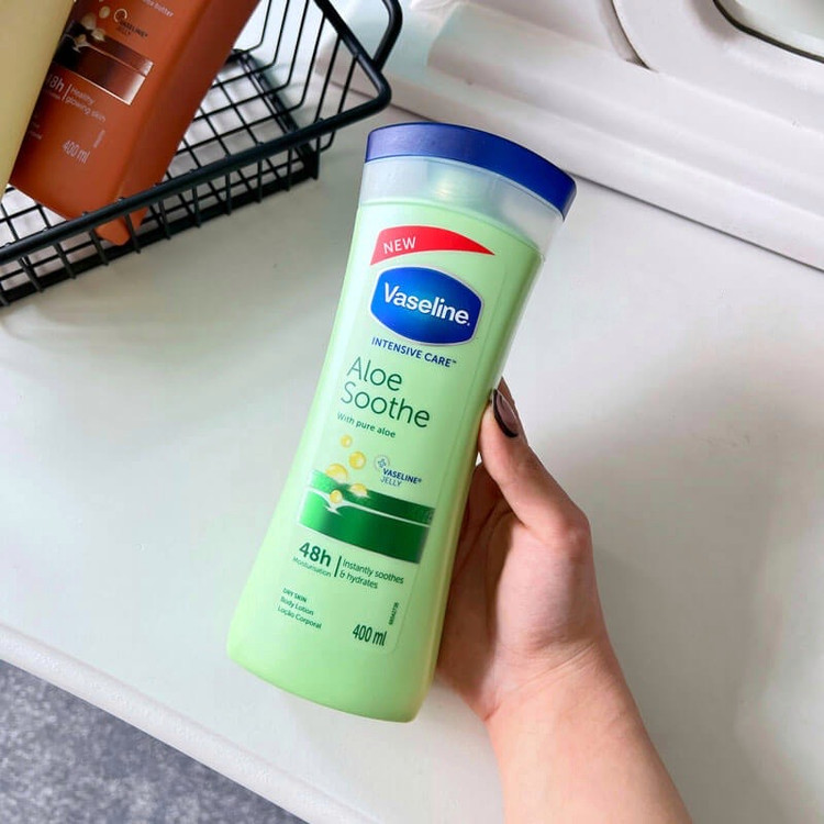 لوسیون مرطوب کننده سبز وازلین حجم 400 میل حاوی عصاره آلوئه ورا است. آلوئه ورا یک گیاه سبزی است که سرشار از آب و مواد معدنی مفید می باشد. این گیاه قدرت آبرسانی بالایی دارد و در صنعت آرایشی و بهداشتی زیاد استفاده می شود. لوسیون آلوئه ورا وازلین VASELINE برای پوست های معمولی و خشک NORMAL TO DRY SKIN مناسب است و از آن می توانید هر چند بار که بخواهید برای صورت و بدنتان استفاده کنید.