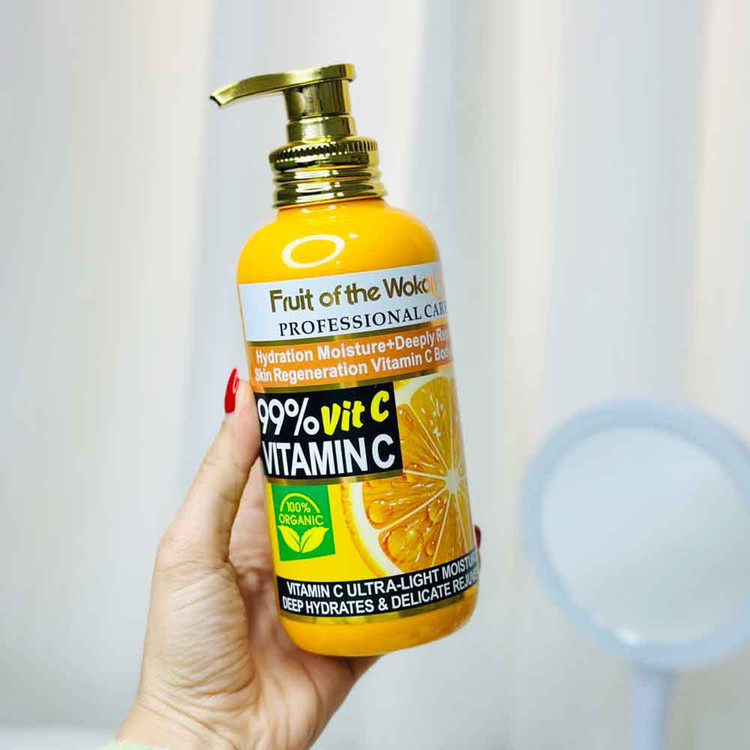 لوسیون ویتامین سی، پوست را روشن و صاف میکند و چروک و نقاط مشکی روی پوست را رفع میکند.پوست را سفت کرده و آبرسانی میکند تا افتادگی آن کم شود.