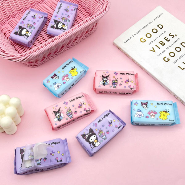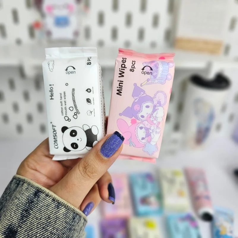 دستمال مرطوب فانتزی ۸ تا دستمال داخلش داره موادمضر نداره کیفیتش فوق العاده بالاست برا هدیه خیلی گوگولی